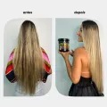 Indicada para cabelos opacos, quebradiços e desestruturados, a máscara hidrata profundamente, fortalece a fibra capilar e restaura a vitalidade dos fios.